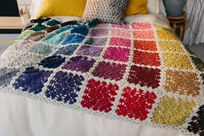 MATERIALS● Scheepjes Terrazzo Colour Pack (60 x 10g balls), 70% wool/30% viscose, 10g/35m/38yds Shade: Colour Pack x 1 pack ● Scheepjes Terrazzo, 70% wool/30% viscose, 50g/175m/191yds Shade: Pergamena 745 x 5 balls ● 3.5mm hook