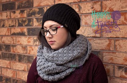 This is a PDF crochet pattern for a textured cowl that coordinates with the following patterns: Texture Weave Beanie, Texture Weave Slouchy Newsboy, Texture Weave Boot Cuffs. The cowl can be made in any size.