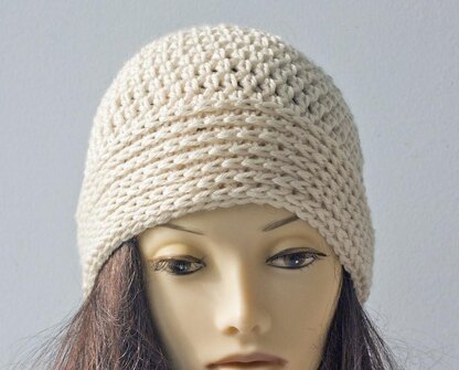 This is a simple pattern that works up quickly. It has an interesting brim that looks like knitting. A useful stitch to learn.