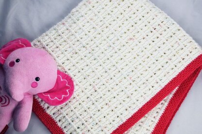 This textured baby blanket is soft and squishy! It’ll work up in no time with a simple 5-stitch and 4-row repeat. Add an edging using whatever color you desire for that finishing touch!