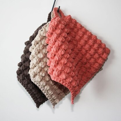 Styles may change but our needs remain the same, so it was my desire to create a pretty functional pot holder that would fit into our modern decor. This fun pattern is highly addictive and because bobbles are used, as opposed to the popcorn stitch, the pot holder works up relatively fast!