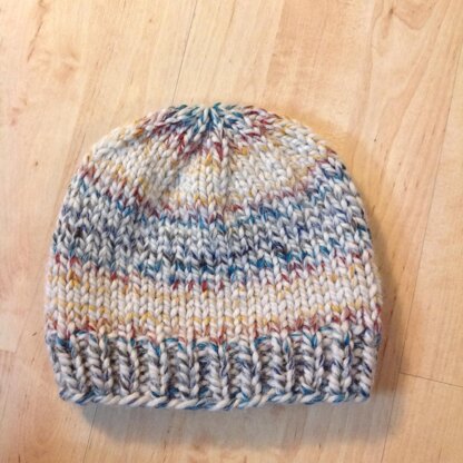 This hat works up super quickly with huge yarn and large needles - you pick between 8.0mm or 9.0mm. You might need two skeins if you are going to use 9.0mm.