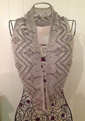 I've had a great reception to these lovely beaded cowls. You may work them with or without beads. The large cowl uses 920 size 6/0 Miyuki glass beads; the small cowl uses 460 size 6/0 Miyuki glass beads. You will hook the beads on with a small steel crochet hook. The edge may be pulled out to make a scalloped border, or as in the small cowl, left straight for a more casual look. The directions are charted on a large easy to read chart with a 24 stitch repeat and directions on how to read a chart. For the large cowl, I chose a lovely mink yarn from Great Yarns. It's soooo soft - perfect for snuggling around the neck! The small cowl uses Socks That Rock Lightweight in color "Handsome Man", a great fingering weight with good stitch definition and wonderful colorways.