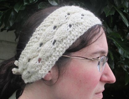 The Answer uses less than 100 yards of aran weight or heavy worsted yarn. The textured pattern works up quickly and knitted-on ties fasten the band at the back of the head. Both charted and written instructions for the main band are given; the ties are picked up and knitted on afterwards using written instructions.