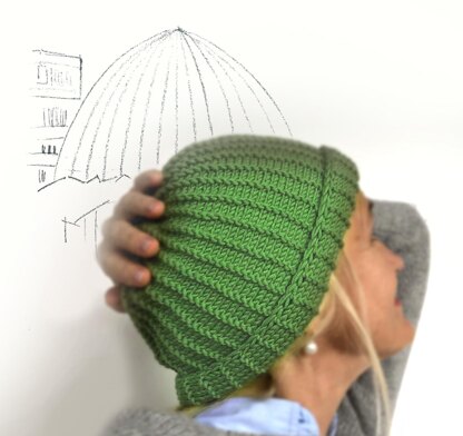 Diese Mütze ist Teil der Serie “Domes around the World“ – inspiriert von den schönsten Kuppeln der Welt. Das Anzeiger-Gebäude mit seiner grünen Kupfer-Kuppel ist ein Wahrzeichen Hannovers und mit seiner schlichten Form eine tolle Basis für eine supercoole Mütze. Ein schnelles Projekt, flach gestrickt und mit einem 3-needle-bind-off verbunden – ohne Nähen!