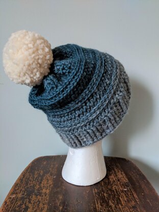 The Arya Toque works up quickly with bulky weight yarn. I like both Premier Yarn -- Puzzle Yarn and Lion Brand Scarfie Yarn for this project. They are both self striping yarns that look beautiful in this pattern. This pattern features a stretchy band and the camel stitch is used for texture.