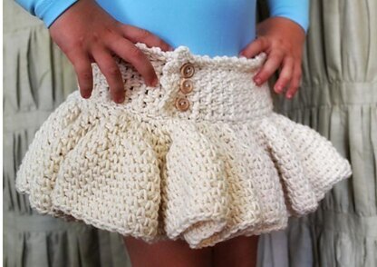 Includes three sizes: Child's: Sm. 20’ waist (Med. 22” waist) (Lg. 24” waist) Uses any worsted weight yarn. You will also need several small buttons fro decorative purposes. Very easy to work up-only uses three basic stitches.