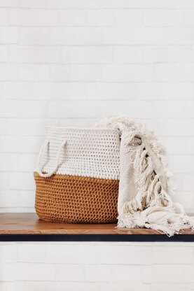 Description: "Inspired by traditional seagrass baskets, The Belly Basket is a crocheted interpretation of this stylish home decor item that’s been a huge trend lately! Crocheted in the round using two different colored yarns and using simple stitches, The Belly Basket crochet pattern is super easy and suitable for beginner crocheters. Whether you store blankets in it or a cute plant, The Belly Basket is sure to make a modern decor statement in your home!"