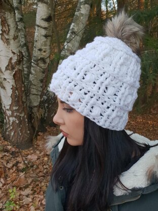 Fast to make and extremely pretty beanie with nice texture. Add pompom of your choice for the final touch.