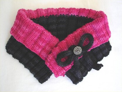 A great, fun accessory this season. This scarf is knit on a #10.5 needle with chunky weight yarn. The sample is shown in Artyarns Ultrabulky merino but any chunky weight yarn will work. You will need 2 colors of approx. 100 yards each. Beginner knitting. Decorative button and snap closure optional.