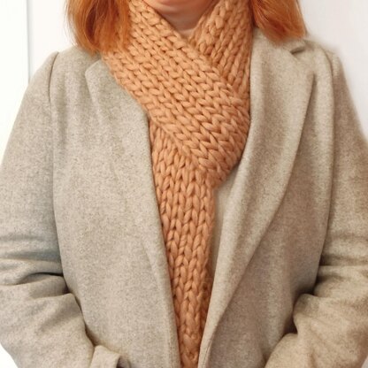THE CLASSIC is a beginner scarf knitting pattern, knitted with super chunky yarn, ideal to finish in just a few hours. Chunky, cozy and stylish reversible knit, perfect for men and women, this is an unisex winter accesorie.