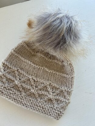 The pattern is designed for a beanie hat, however, it is very simple to knit this hat in a slouch style. Directions are included in the pattern.