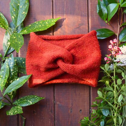Design: A simple, easy to knit deep/wide style headband with a twist in the front