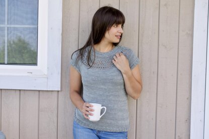 The Everyday Tee is a top-down yoke sweater with a simple lace pattern. This tee is knit at a very loose gauge to give it some drape and have it be the perfect tee for any occasion. It also knits up SO quickly :smile: I just love how simple it is to wear over any jeans, dresses, or shorts. As a busy twin mom, I love any knitted item that I can just throw on with any outfit. I hope you love it too!!