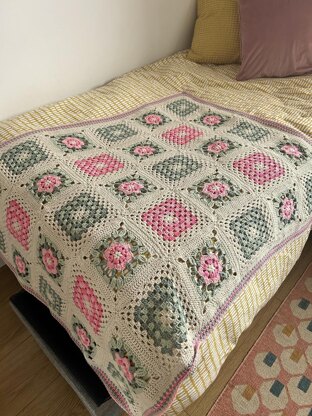 A lightly textured, decorative floral throw. This blanket incorporates a classic granny square and a floral motif square to create something cosy and whimsical that will hopefully brighten any room (and your day!).