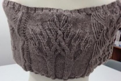 A knitted neck cowl, created for the Glasgow School of Yarn Celebrations #GSoY; to use the theme of the Motto/Coat of Arms of The City of Glasgow, Scotland and the legend of St. Mungo and St. Kenitgern and create a design to reflect this.