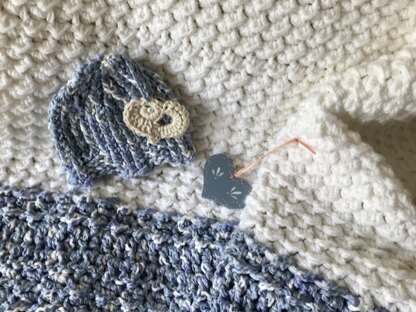 Textured with raised stitches throughout. Completely reversible and it is so chic! Fits any decor in any room. Simple crochet and knit stitches used. Knit Hat instructions included in the pattern. The blanket is crocheted.