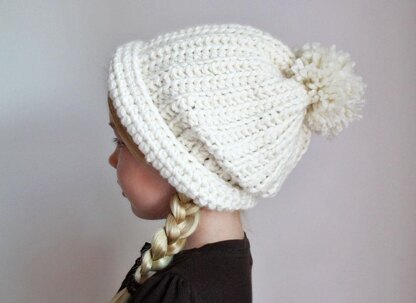 The Halle Pom Pom Hat is a simple, clean, classic pom pom beanie perfect for the winter season. A creative use of very simple stitches gives it a knit hat look. Now when someone asks you to "crochet me a knit beanie," you sort of can :)! The hat can be worn straight up in a classic pom pom beanie style, or back on the forehead and slouched for a more contemporary look.