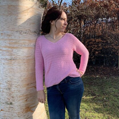 The Light Fandango is a lightweight, floaty v-neck crochet sweater, worked using a top down seamless raglan construction. It has an oversized body with fitted long sleeves that will have you skipping.
