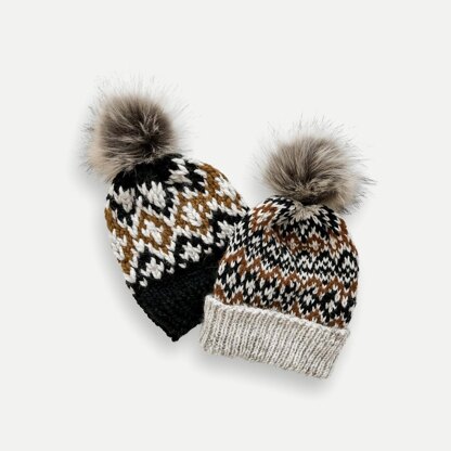 The Loggia Beanie was designed with a cozy, ski lodge in mind. If you've never tried 3-color knitting, now's your chance. Whether you are Team worsted weight or Team Super Bulky, I've got you covered with a pattern for each. Featuring a unique, geometric fair isle pattern with endless color combinations, this beanie is sure to become one your new favorite makes. Fun fact: Loggia means "lodge" in Italian.