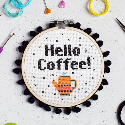 The Make Arcade Midi Cross Stitch - Hello Coffee - 4in