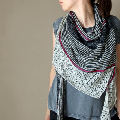 The sample is shown in Wool of Fame Merino Silk Lace. A suggested substitute is shown below.