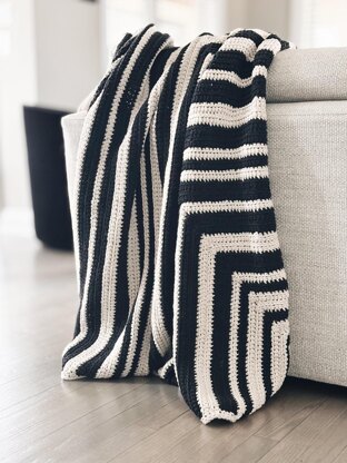 The Mitra Blanket is the perfect blend of style + comfort. Featuring a stunning single crochet stitch worked thru the front loop in a striped pattern creating a reversible, rib-like texture that adds a chic touch to any room. Worked from the outside in, and finished with a slip stitch border, this timeless piece will compliment any home decor. Fun Fact: Mitra means "mitered" in Italian.