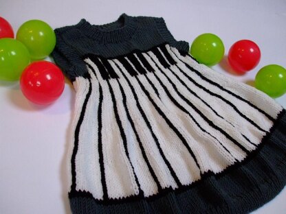 "The Piano Dress" is part of a collection including a sweater and a vest. This dress is knit flat using intarsia knitting for the skirt and stranded knitting for the body, so several ends to weave in at the end.