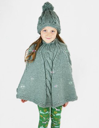 The poncho and hat knitting pattern are worked in soft super chunky yarn on a circular needle (or a set of double pointed needles) so that there are no seams. The bobble hat can be made without the bobble if required.
