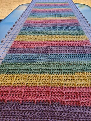 This drapey, worsted weight, rectangle wrap, worked in a multi-row repeat, is ideal for any slow color-changing yarn. A wrap that is just perfect for the adventurous advanced beginner or the seasoned crocheter who would like a TV, poolside, or fireside project.