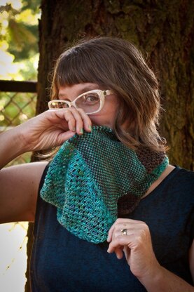 the Sand and the Sea Cowl was inspired by the beauty of the Oregon Coast, along which the Yarn Crawl 101 will be journeying. The slipped stitches recall a sandy beach, whereas the mesh sections are inspired by all of the lovely texture the Pacific Ocean shares with us. It's a fabulous excuse to mix two complementary colors, inspired by the ocean of your dreams.
