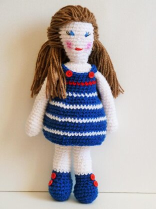 This Doll is a Sea Girl. She wears a little stripes dress and little boots to be fashionable. She is simple to made and she will be a beautiful friend to your little girl.
