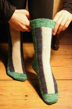 Difficulty: basic sock knitting, intarsia in the round, which is fully explained in pattern.