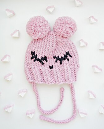 This oh-so-cute winter beanie is the cherry on top of your winter outfit! The easy pattern offers sizes for the whole family and multiple finishing touches, sleepy eyes, pompoms, strings... The pattern is a clear pattern for the basic hat that you can customize to your receiver. With a chunky yarn, it is a one day project!