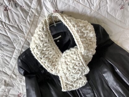 Texture beyond texture in this pattern! Completely reversible. Warm and comfy. Looks great over your coat or favorite sweater. Simple crochet stitches throughout.