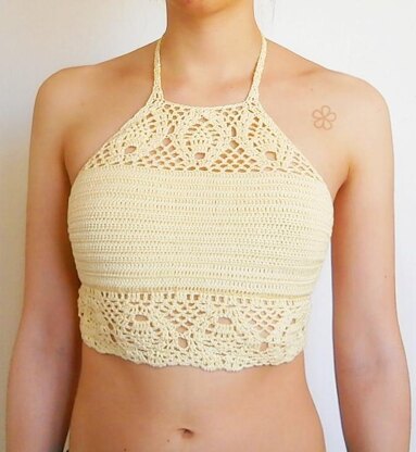 This is the "TROPICAL" crop top Crochet Pattern a boho lace festival top.