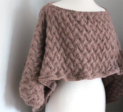 The Willow Cape Pullover is cozy, easy to wear and one of our most versatile pieces. It can be worn over anything from a sweater in the winter to a tee on a summer night. This pattern is sized for children ages 5-10 years and adult. It has a nice drape and is very flattering in style. It can be worn dressy or casual. It is knit with a worsted weight yarn on a US #11 needle.