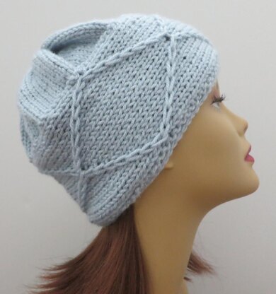 Inspired by a visit to one of the Grand Hotels, The Woodlawn Hat is a sophisticated warm winter hat. Design features include a classy diamond pattern and a hint of a billowing top. The wide hat band is a loose fit with a tighter edging, making this hat extra comfortable. The Woodlawn hat can be worn as a classic toque or as a hat with a tiny slouch to it. Using worsted weight yarn and U.S. size 9 needles, The Woodlawn Hat is an easy knit and a great way to learn to use a cable needle.