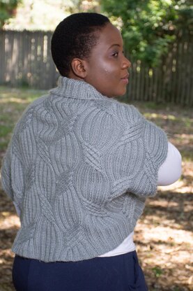 This shrug is knit as a simple rectangle and works up fairly quickly. This is another one of the perfect gifts for young fashion savvy individuals.