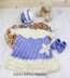 3 medium buttons for dress 2 small buttons for shoes 32”/81cms of 1”/2.5cms wide ribbon for hat 48” 128cm of ¼” (1cm) ribbon for sleeves Chest 20”(51cm) Body length from under arms 10”(25cm)
