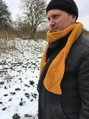 The scarf is an easy knit from a written pattern only. You can adapt the length & number of repeats to the yarn you have available.