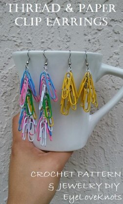 Materials: Small Amount of #10 Crochet Thread - I used Hobby Lobby's Artiste #10 Thread in Cloud, 2.35mm Crochet Hook, Tapestry Needle, 2 Earring Wires, 18-28 Paper Clips, Jewelry Pliers