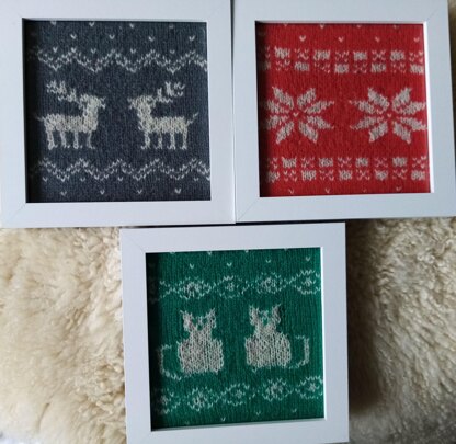 Digital knitting pattern for three festive Christmas pictures, also suitable for Christmas cards.