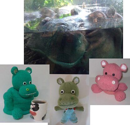 Hippo Tea Cozy is very convenient to keep your teapot worm. The size of the Hippo Tea Cozy (inside of the body) is 7 inches top and 7 inches diameter. The Hippo Tea Cozy can keep worm your large teapots. Knitkinz are cute stuffed knitted animals. Google “Knitkinz” and you will learn more about Knitkinz animals on just go to knitvana.com website. Knitkinz Hippo - 14 inches tall - is one of the most popular knitkinz animals. Knitkinz Office Hippo is 6” tall. It can sit next to you in your office. It can keep pens or business cards for you. Or it can sit and look at your computer... Price of these "Three Hippos" patterns is $7.77. If purchased individually the price is $11.95