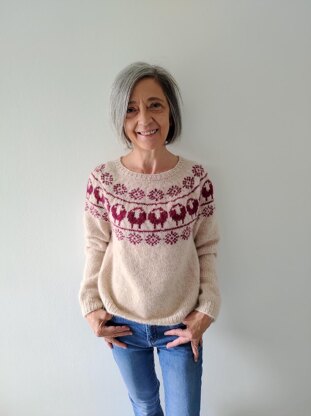 US 7 (4,5 mm) 24” (60 cm) and 32” (80 cm) circular needle and DPNs (or longer circular needle for magic loop) for body and sleeves.