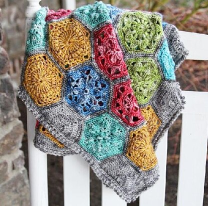 STITCHES Join Motifs: Free YouTube tutorial, “CJAYG using SC and PLT for hexagons” GAUGE Motifs are 4.2in at widest point US Size E (3.5mm) hook SIZING 32x36in