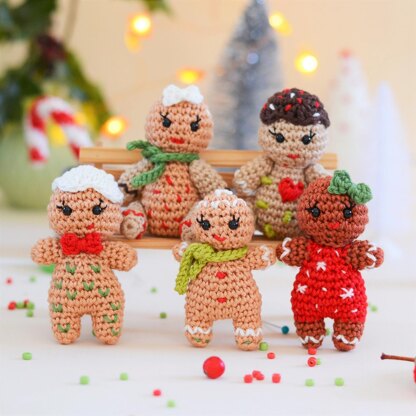 Tiny gingerbread man crochet pattern is a 6-page document. The crochet tiny gingerbread men are 7-9 cm / 2.7 -3.5 in tall if you use specified yarn and hook. It includes the description of 3 (three) different dolls: a small one, a bigger one, and one doll with movable arms and legs.