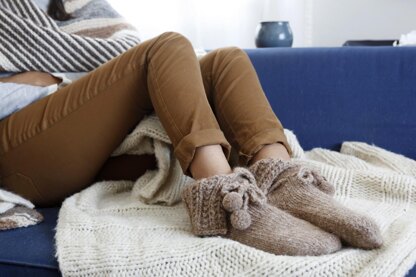 Comfortable and cushy, the Toba Slippers are knit in Hinterland Watershed with warmth, wearability, and style in mind. These slippers are graded for three different sizes and can be finished with ties in the style of the knitter’s choosing. Worked from the toe up and featuring a textured fold-over cuff, The Toba Slippers are the perfect accessory curling up at the cabin or at home.