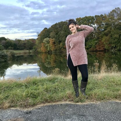 This is a crochet tunic pattern for the Tommy P. Tunic. The velvet yarn reminded me of the 90's, and I'm a 90's kid! So I named this tunic after one of the characters from my favorite TV shows growing up. This tunic is made in two panels whipped together, with a high seam, a ribbed collar, and long sleeves ending in a matching rib.