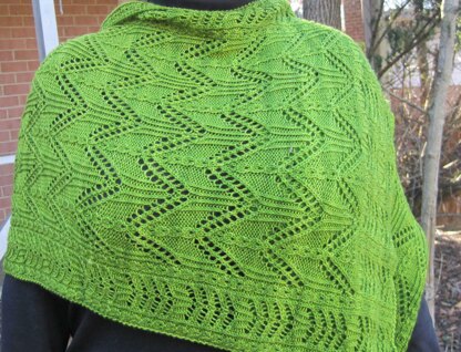 This is a pattern for a light weight shawl. It’s heavier than a wedding ring shawl, but just the ideal weight for a spring or fall evening. It knits up fairly quickly and would make the ideal gift, for yourself of someone that’s special to you.